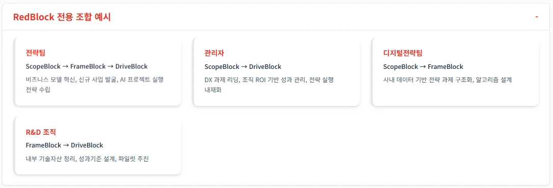 → 개인/팀이 AI에 익숙해지고, 간단한 자동화 과제를 직접 해결RedBlock으로 전략 확장 및 조직 내 전파