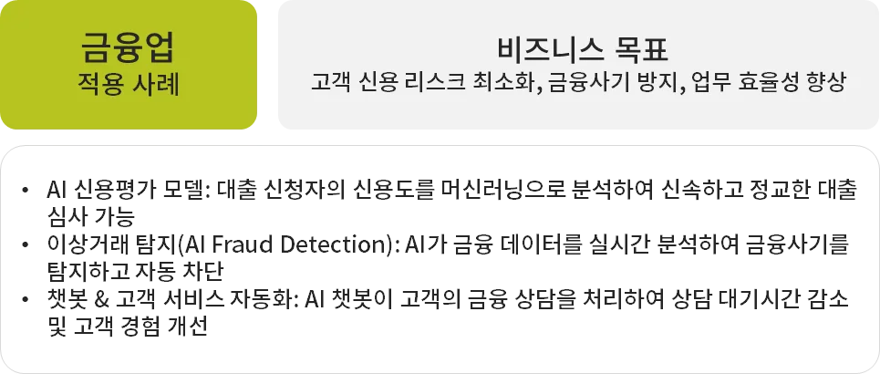 디지털 전환 중 '인공지능(AI)'을 중심으로 비즈니스 운영방식(제품, 서비스, 프로세스) 등을 근본적으로 변화 시키고 의사결정, 효율성, 사용자 경험 등을 향상시켜 새로운 가치를 창출하는 프로세스