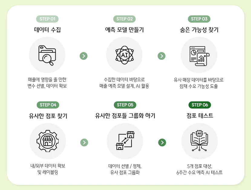 기존 프랜차이즈 베이커리 시스템은 통합 발주 방식이 일반적이었습니다. 이로 인해 특정 매장에선 자주 품절이 발생하고, 반대로 다른 매장에선 재고가 남아 폐기가 발생하는 문제가 빈번했습니다. CJ푸드빌은 CJ그룹 AI실이 협업하여 매장별 소비 패턴, 시간대, 이벤트, 날씨 등의 데이터를 학습한 맞춤형 수요예측 모델을 개발했습니다.