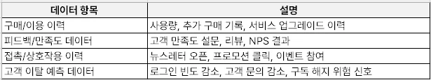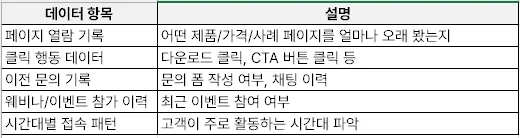 ✅ 고객 행동 데이터를 읽을 수 있어야 하고,