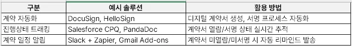 3) 계약 프로세스 간소화 → Slack, 이메일 자동 알림 등으로 내부 공유 및 일정 조율