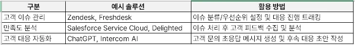 1) 이슈 대응 속도 향상 → 고객 접수 후 1시간 이내 1차 응답 원칙 설정
