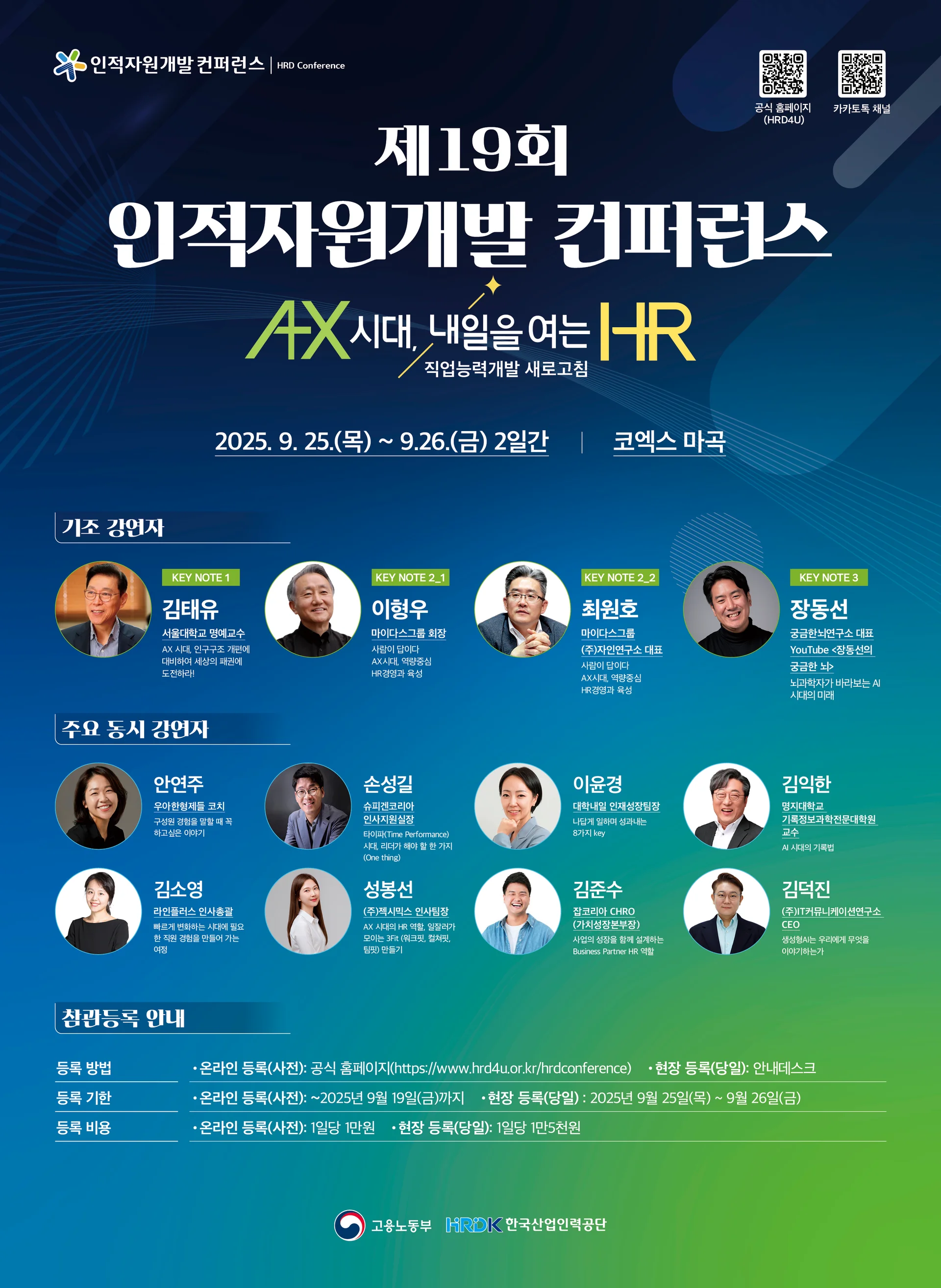 2025년 9월! 한국산업인력공단이 주관하고 고용노동부가 주최하는 「제19회 인적자원개발 컨퍼런스」가 열립니다.
