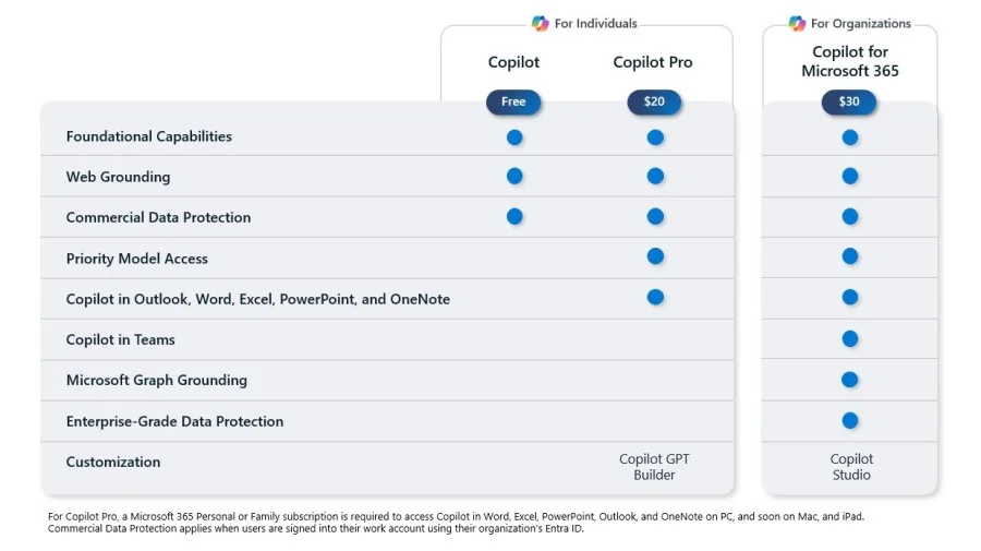 그러나 Microsoft는 Copilot이 제공하는 가치 대비 비용 효율을 강조합니다. Copilot을 통해 얻는 직간접적 생산성 향상, 시간 절약, 업무 품질 개선이 충분한 가치를 창출하여 $30의 추가 비용을 정당화할 수 있다는 메시지입니다. 한편 중소기업(SMB)에도 Copilot 혜택을 확대하기 위해, 2024년부터 좌석 수 제한(기존 300석 이상 요구)을 철폐하고 소규모 기업도 자유롭게 Copilot을 구매할 수 있도록 했습니다. 또한 교육 부문(A3/A5) 등 특별 플랜에도 Copilot이 제공되기 시작했습니다.